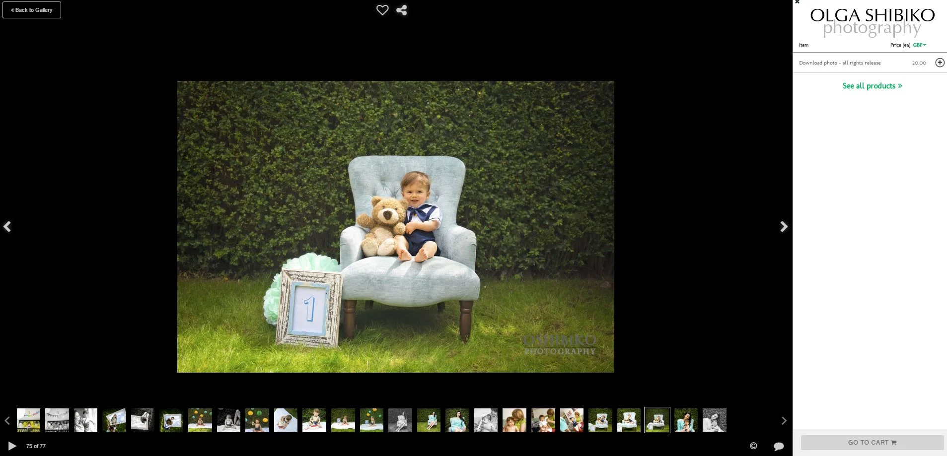 Click on your gallery and through thumbnail view click on the 'Buy' button in the upper right corner.